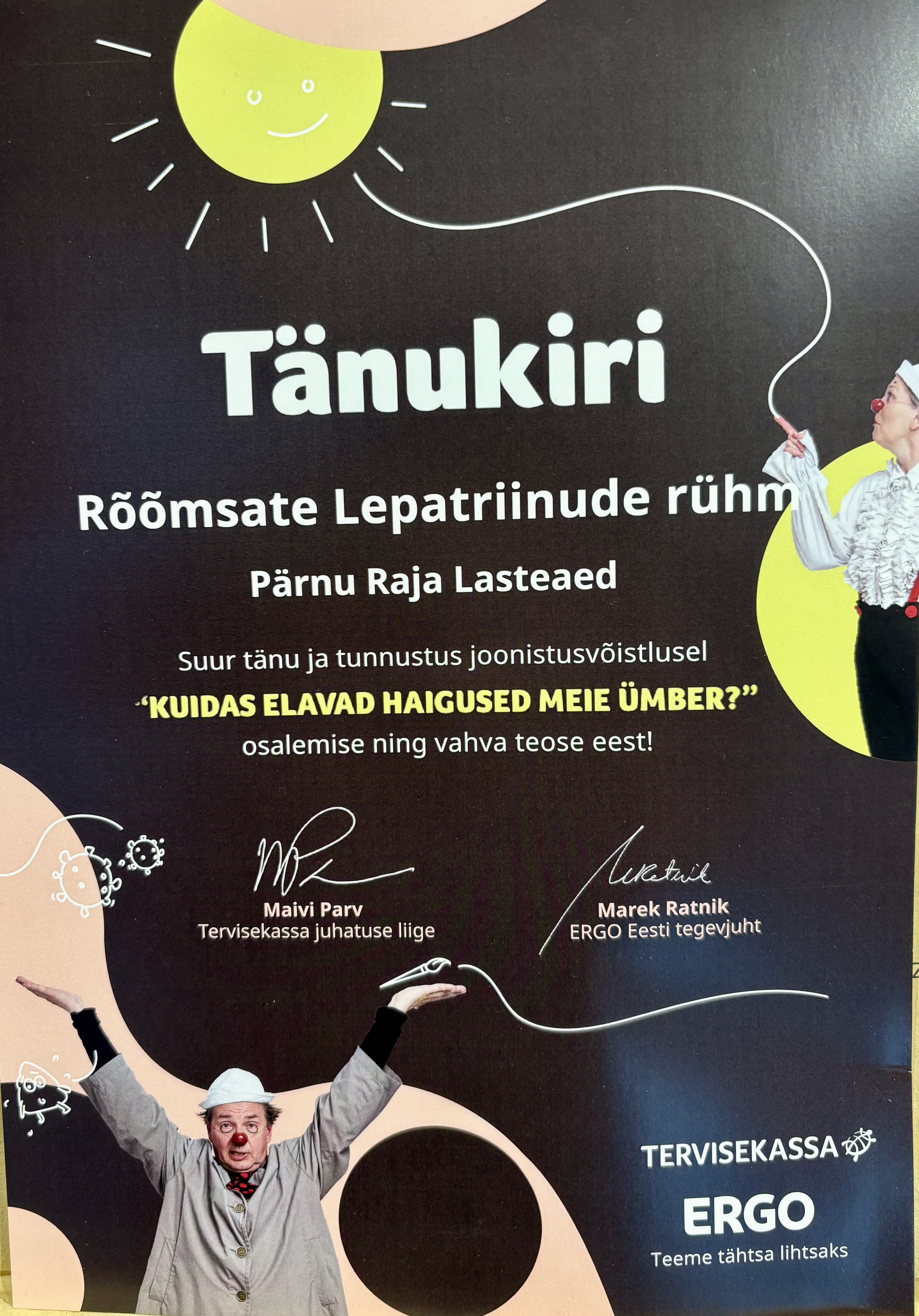 Raja lasteaia lapsed osalesid Tervisekassa ja ERGO kindlustuse joonistusvõistlusel "Kuidas elavad haigused meie ümber?”.