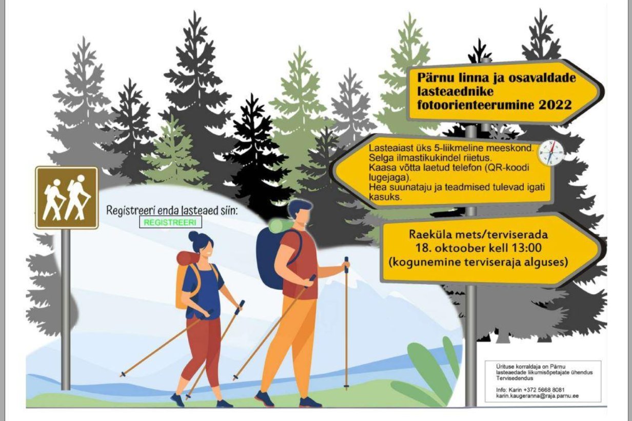 Pärnu lasteaedade liikumisõpetajate ühendus Tervisedendus korraldas 18. oktoobril ülelinnalise fotoorienteerumise võistluse Raeküla terviseraja muinasjutulises metsas. Sellest sportlikust pärastlõunast võttis osa 14 lasteaeda.