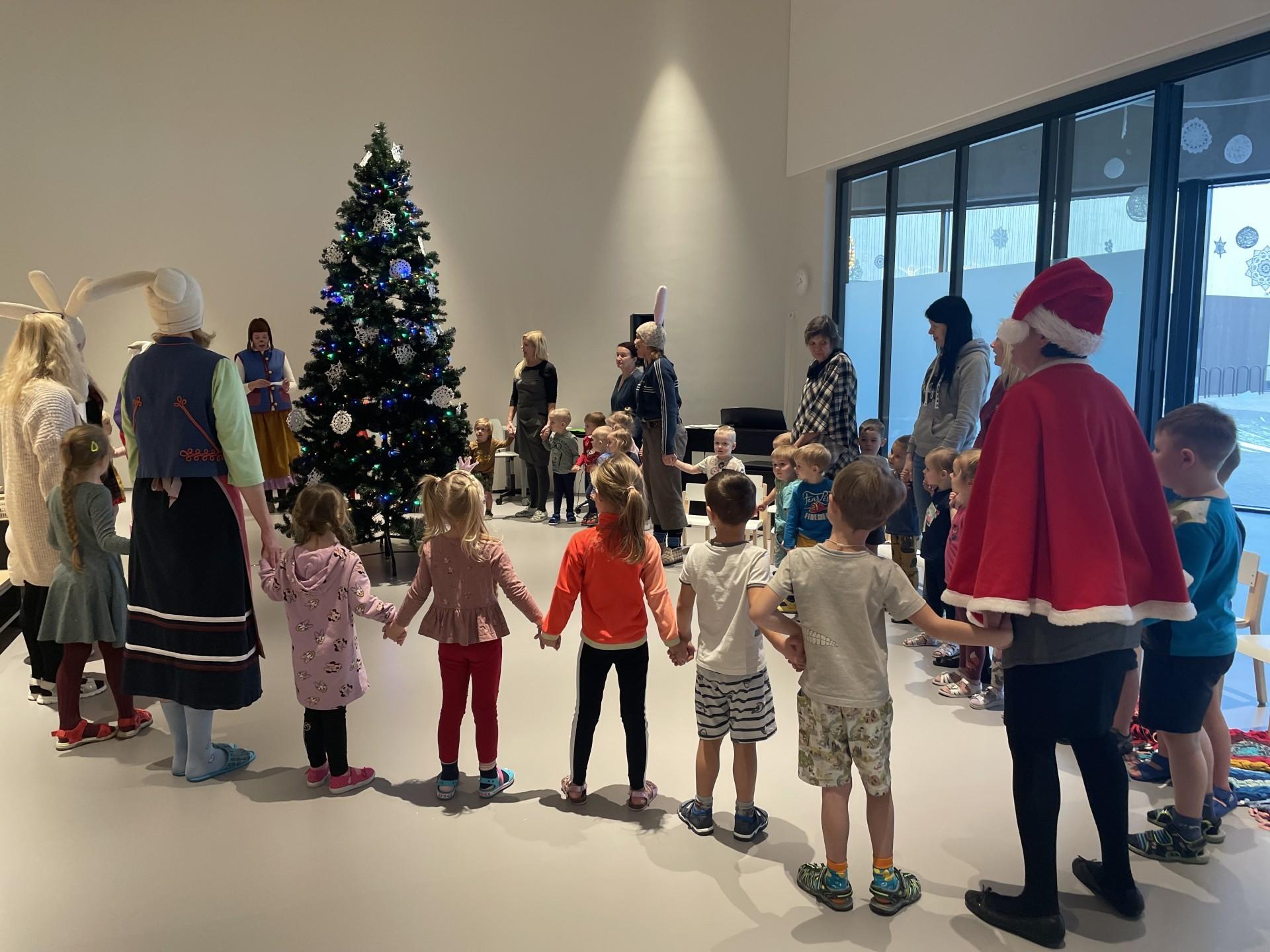 Lotte ja tema sõbrad ning muusikaõpetaja Leena laulsid koos lastega kuused välja.